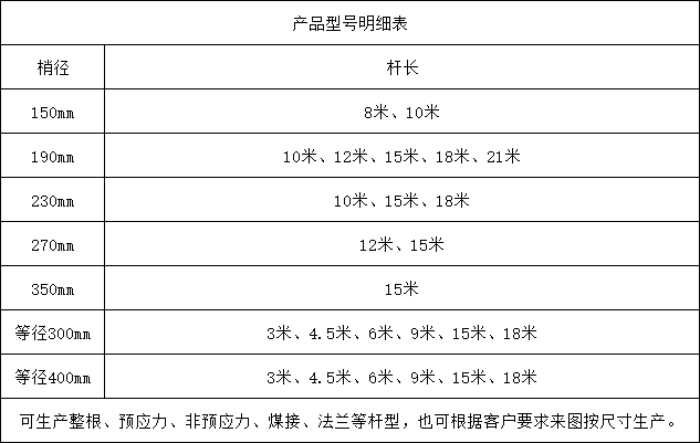 与非预应力水泥电线杆相比,改产品的抗裂性能更好,因此产品内的钢筋不容易受到腐蚀,它的耐久性也会随之提高,使用寿命增加,该产品的截面尺寸一般比较小,这样不仅可以更加的美观,同时还可以节约用料,本产品通常在重要的电力输电线路中使用的比较多,产品杆件的抗弯以及抗扭刚度比较大,有优越的抗风和抗冰雪荷载能力,它具有很长的长度,可以满足高压等特种用途的需要,其安全性也随之提高。该产品与其他普通电杆相比能够节约钢材,同时在设计及制作的过程中提高了产品的抗裂能力,保证了产品的强度,该产品的抗脆断性能优于普通的电杆。